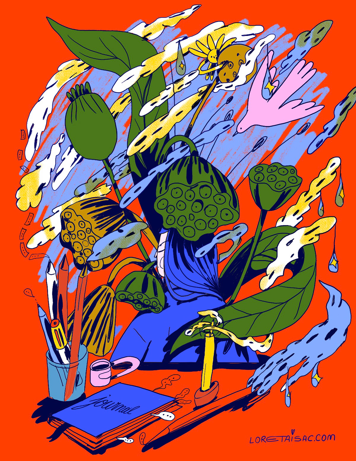 Like spring returning each year, or a new idea emerging at the start of another year. A fresh story waiting to be sketched in a journal or favorite sketchbook. But growth requires rain, which the planet needs to thrive. Our creativity works the same way—it needs moments of rest before it can bloom again. This illustration and animation is about taking wings over and over again—a cycle that repeats endlessly.